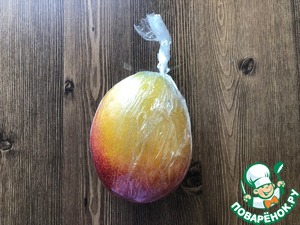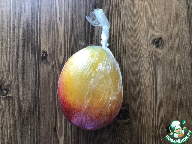 Аккуратно извлекаем манго, а затем снимаем плёнку,