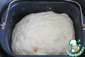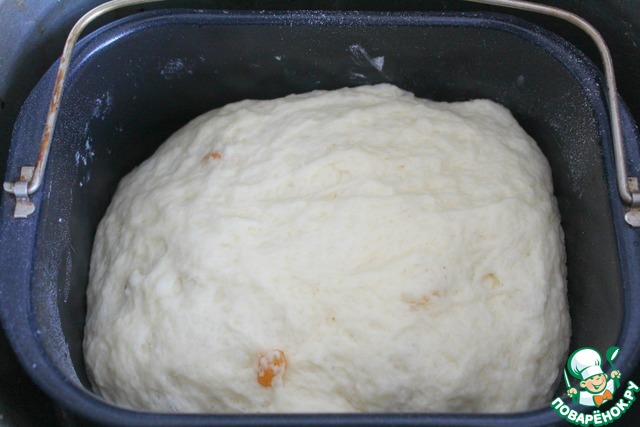 Вынимаем из хлебопечки и выкладываем на подпыленный мукой стол. -