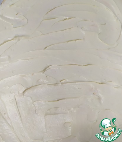 Далее для крема в чаше соединить творожный сыр, сливки и сахарную пудру. Взбить до состояния мягких пиков на средней скорости.