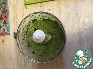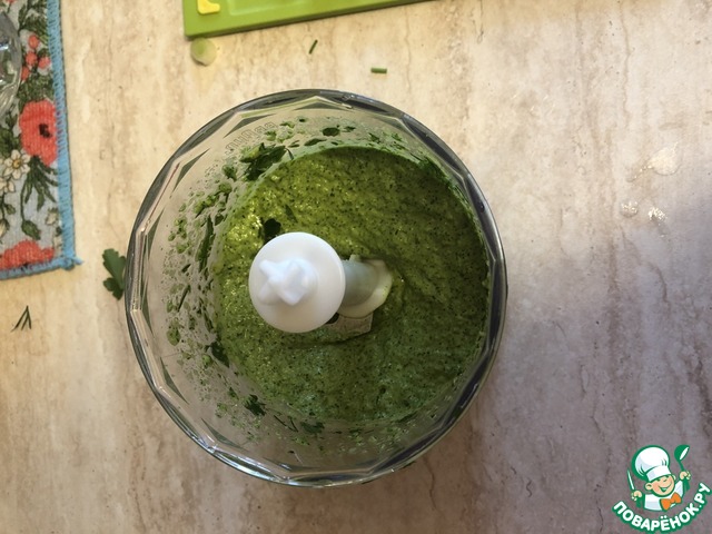 Приготовить травяную смесь: зелень, оливковое масло пробить блендером. Посолить