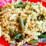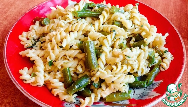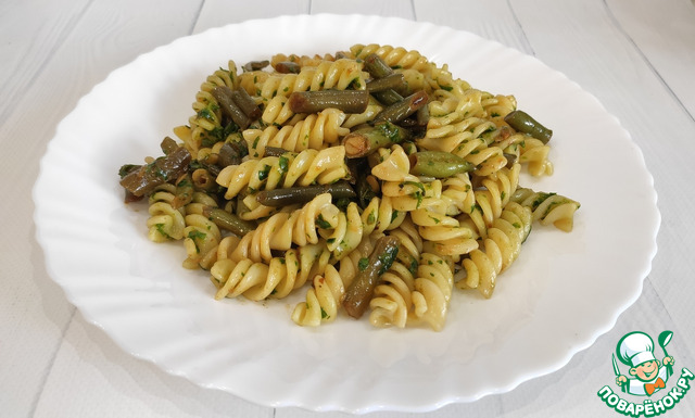 Макароны с фасолью и травяным соусом