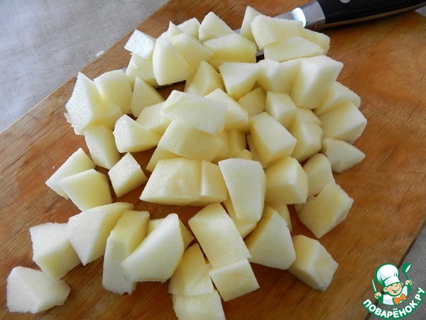 Яблоки очистить от кожуры и семян, порезать небольшими кубиками.