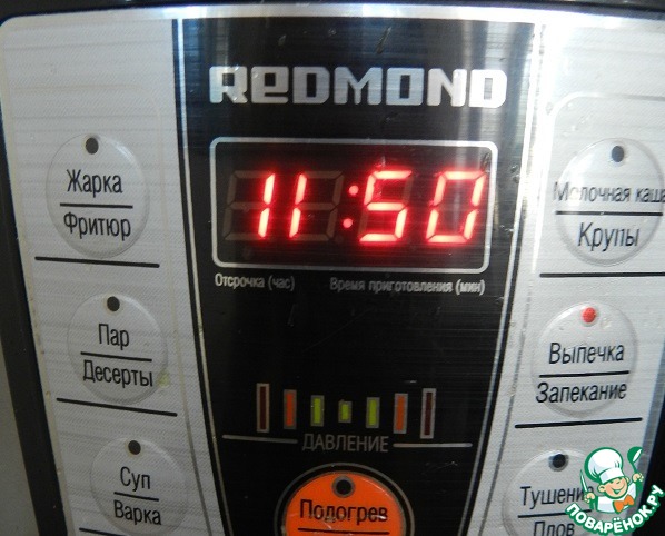 Чашу мультиварки смазать маслом. Выложить тесто, разровнять лопаткой. Установить режим выпечка - 50 мин. (у меня мультиварка-скороварка мощностью 900 Вт)