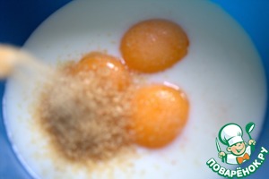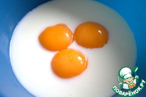 Отделить желтки от белков и перенести их в кефир любой жирности. Кефир именно в граммах.