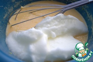 Отдельно взбить белки до пиков и чуть лимонного сока.