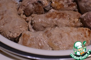 Обжариваем рулетики по 3 минуты (или до зажаривания) с двух сторон, затем я убавляю температуру до 120 градусов