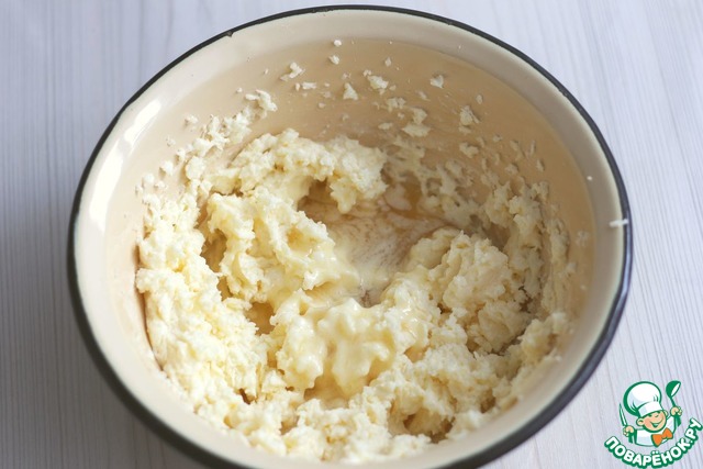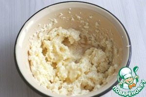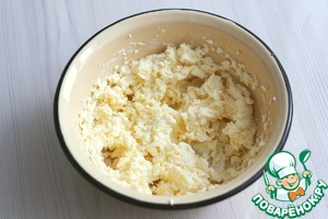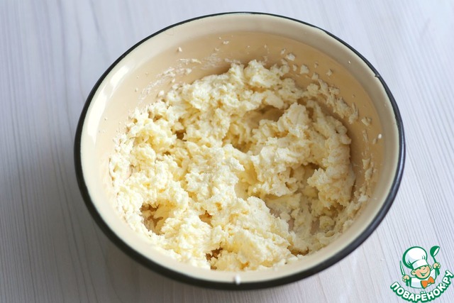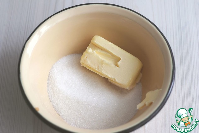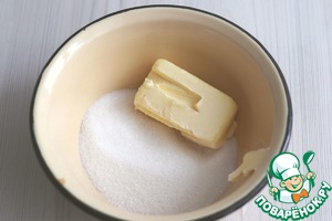 В отдельной миске соединить сахар (90 гр.) и мягкое сливочное масло (90 гр.)