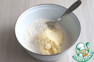Соединить сухую мучную смесь и масляно-сахарную смесь.