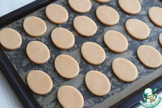 Заготовки поместить на противень, застеленный пергаментом или силиконовым ковриком. Противень поместить в разогретую до 170-180С духовку. Выпекать до легкого золотистого цвета. Хочу обратить внимание, печенье выпекается очень быстро, в духовке Gorenje мне потребовалось 5 мин.
