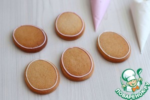 Кончик у корнетика срезать примерно на 1-1,5 мм. На каждом печенье сделать контур из цветной глазури.