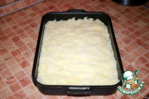 Приготовьте картофельное пюре.Растерев картофель с молоком,солью,маслом.Выложите в глубокую посуду,