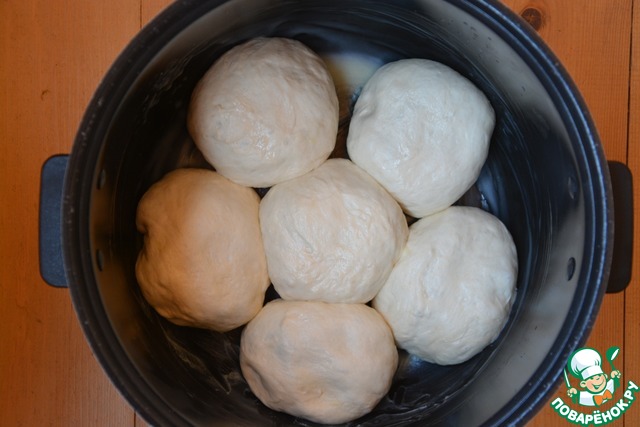 Разделяем тесто на кусочки (мне понадобилось 6шт по 85гр).