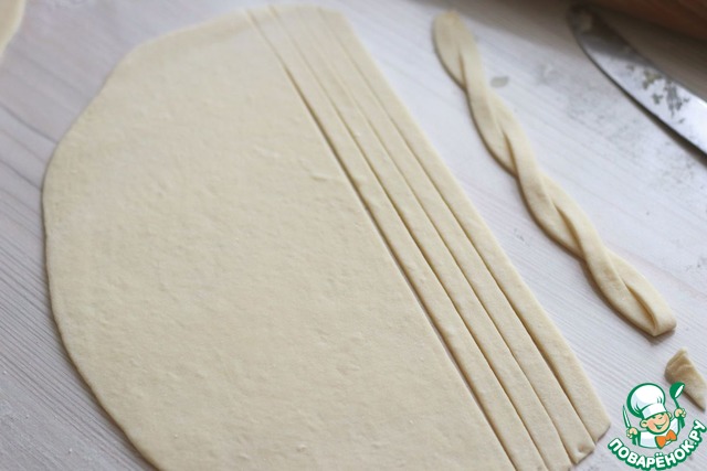 Затем порциями добавить общее количество муки. Замесить тесто. Емкость с тестом накрыть пищевой пленкой и поставить в теплое место для подъема. После первого подъема тесто обмять и поставить подниматься вторично.