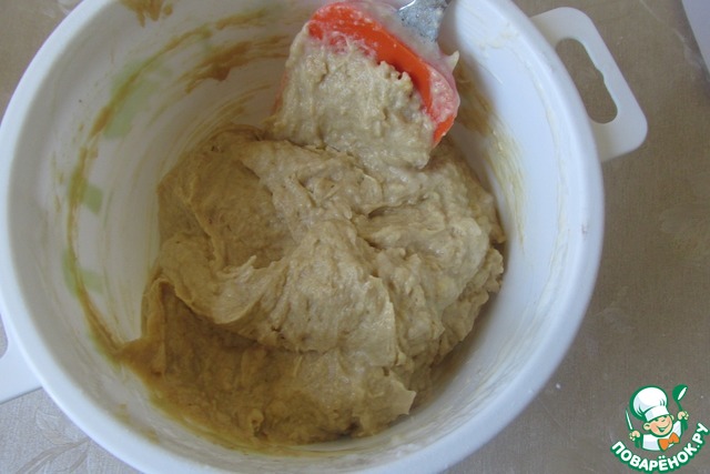 Перекладываем тесто в форму, заполняя её на 4/5 высоты.