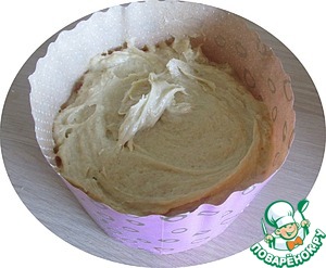 Я использовала бумажную форму для выпечки куличей, диаметром 11 см и высотой 9 см. Если использовать металлическую форму, то её необходимо смазать сливочным маслом и обсыпать мукой, стряхнув излишки муки. -