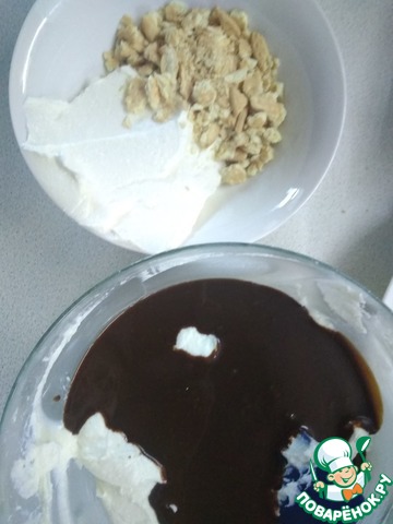 Часть массы (небольшую) смешать с порубленным печеньем.