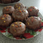 Готовые кексы вынимаем из духовки, даем остыть и украшаем по желанию - у меня сахарная глазурь и яркая посыпка!
