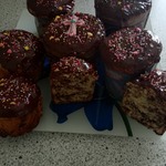 Остужаем, и покрываем растопленным шоколадом, украшаем поджареным миндалем и цукатами.