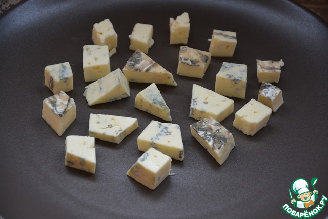 • Сыр с голубой плесенью нарезать кубиками.