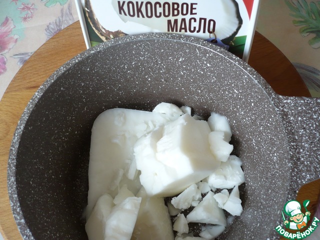 В маленьком сотейнике растопите кокосовое масло на слабом огне.
