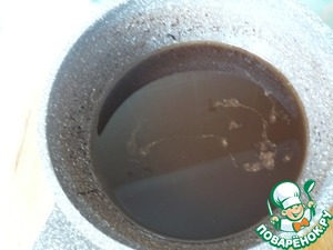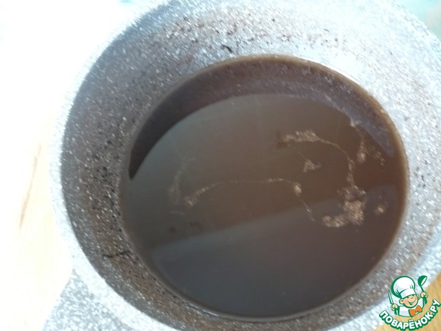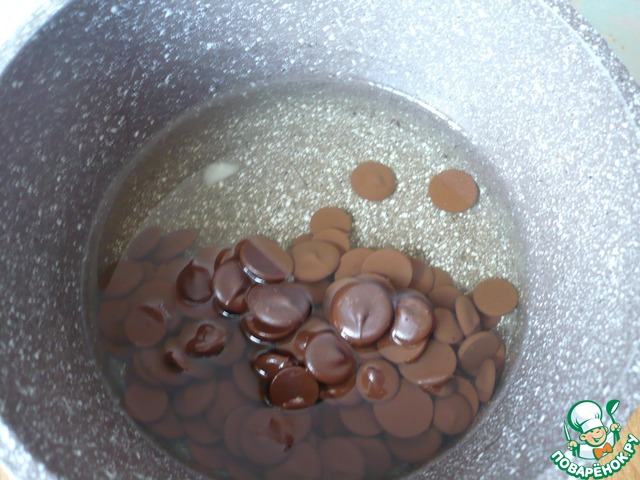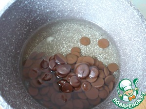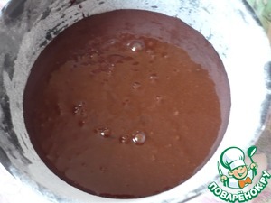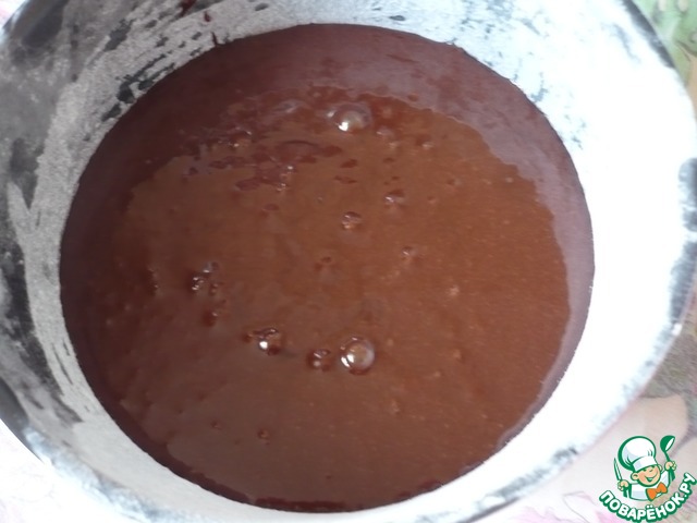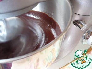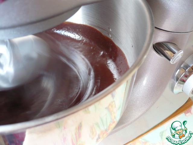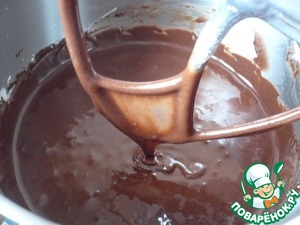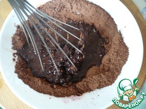 Влейте разведенный какао-порошок в растопленную шоколадную смесь. Все хорошо перемешать до соединения ингредиентов.