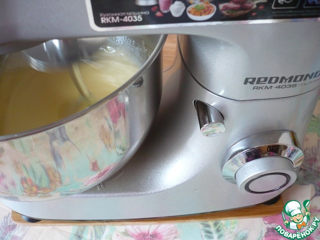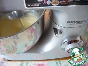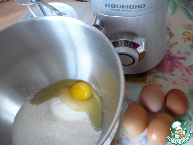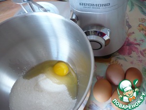 В чаше планетарного миксера "REDMOND" соедините яйца, сахар и соль. Яйца вбивайте в чашу миксера по одному.