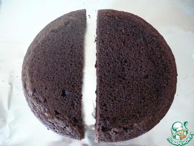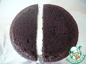 Теперь соберите торт: срежьте выпуклые вершины бисквитов с помощью длинного ножа; переложите обрезки в миску. Разрежьте каждый бисквит на 2 одинаковых коржа (отложите в сторону коржи уложенными в стопку). Разрежьте оба коржа на 2 части, сместившись на 1,3 см от центра. У вас получится 4 полумесяца меньшего размера и 4 полумесяца размером побольше.