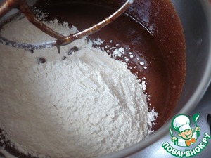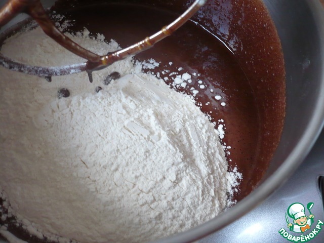 • Влейте разведенный какао-порошок в растопленную шоколадную смесь. Все хорошо перемешать до соединения ингредиентов.