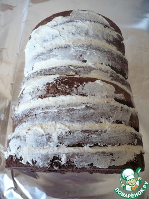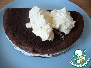 Затем уложите 4 больших полумесяца друг на друга, распределяя сливочный крем между слоями.