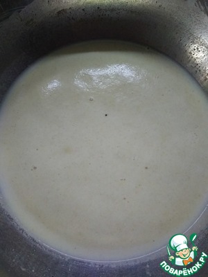 Всыпать муку и замесить тесто, вымешивая 5 минут.