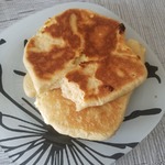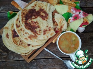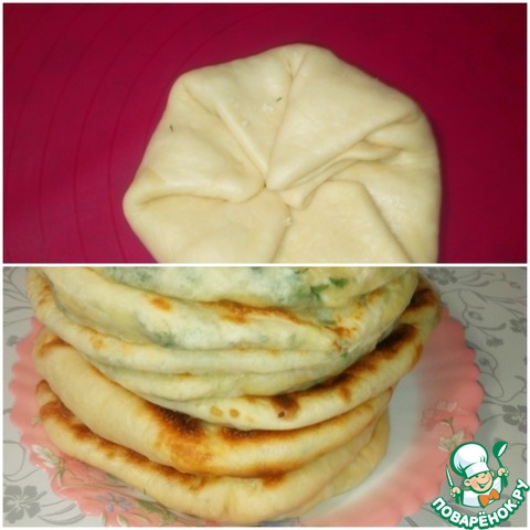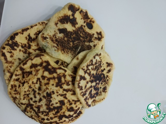 [+5]У меня не обошлось без "отсебятины". Начинка была составной - смешала в равных пропорциях твердый и сычужный сыры. Сычужный сыр был пресным, поэтому начинку подсолила, тем более, что в тесте соли совсем мало. Из зелени использовала свежие укроп и петрушку, а так же зеленый лук. И еще. Не стала добавлять сливочное масло. Решила, что будет жирновато и дороговато. Поэтому, на указанный вами объем продуктов, в тесто добавила 6 столовых ложек растительного масла. И готовые лепешки я тоже не смазывала. Кстати, по времени жарки, первую лепешку жарила по 5 мин. с каждой стороны, а дальше дело пошло веселее - по 2-3 мин. - и готово.