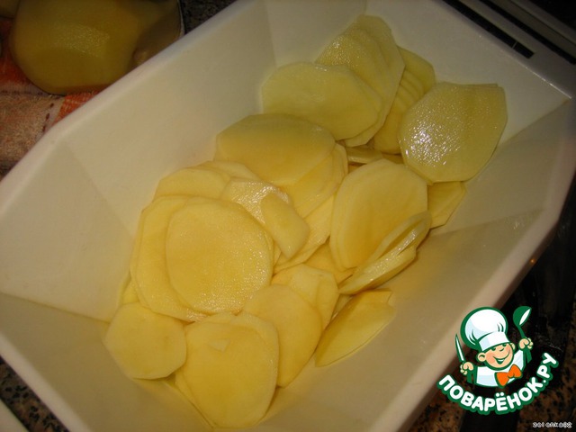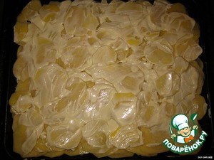 на дно, смазанной маслом, формы выкладываем картофель, солим.