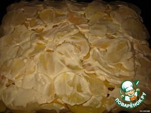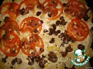 смазываем сметанно-майонезной смесью и в разогретую духовку...