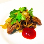 Описание: Печень индейки под луковой шапкой с бальзамическим соусом. Любителям печени индейки и куриной печени посвящается. Готовится быстро, съедается ещё быстрее. Можно приготовить как закуску или подать как основное блюдо.