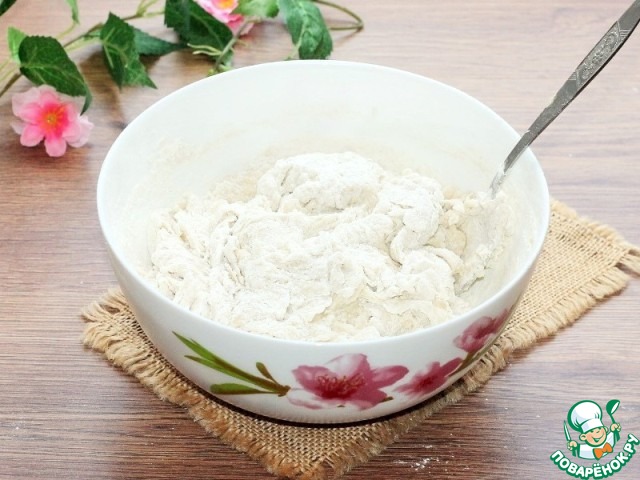 1. Смешиваем пшеничную муку с ржаной и просеиваем.
