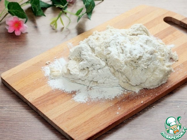 7. Две последние ложки муки высыпаем на разделочную доску и вымешиваем гладкое, блестящее не липнущее к рукам тесто.