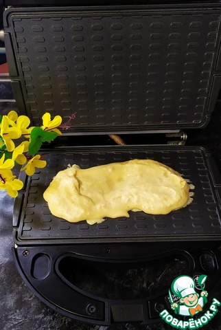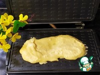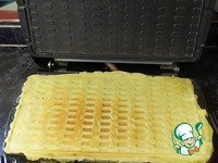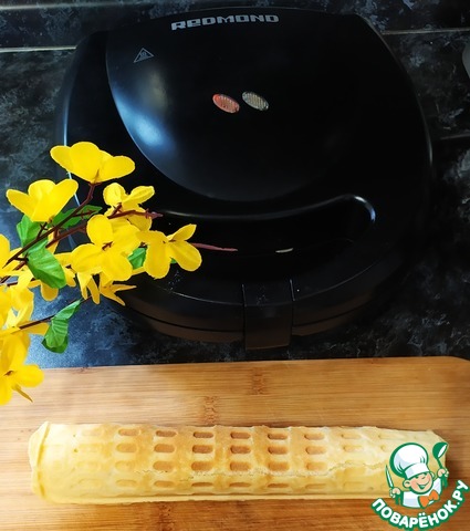 Открыть крышку мультипекаря. Переложить на доску подрумянившуюся вафлю.