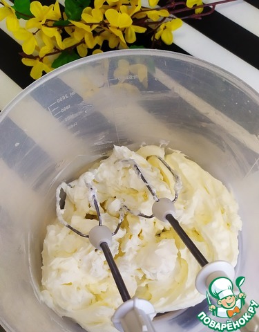 Для крем-чиза в чаше соединить творожный сыр, сливки и сахарную пудру. Взбить до состояния мягких пиков на средней скорости.
