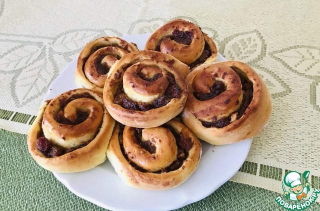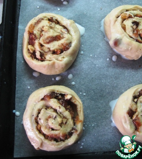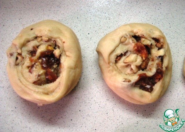 Рецепт «Булочки с финиками, орехами и изюмом»: