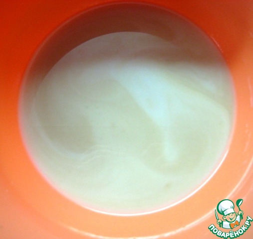 Для теста: соединить в миске теплое молоко и сладкий чай, в котором замачивались сухофрукты.