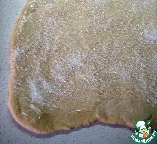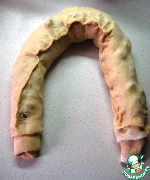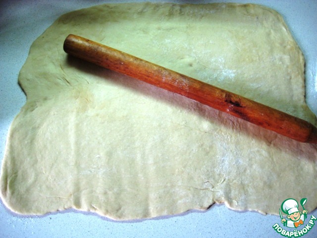 Свернуть аккуратно в рулет по длинной стороне прямоугольного пласта теста, защипнуть край.