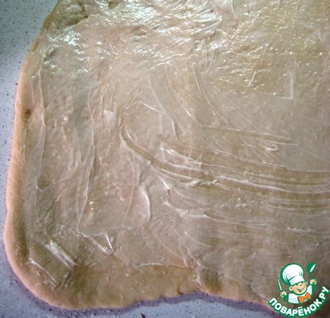 Смазать по всей поверхности мягким сливочным маслом (30 г - для начинки).