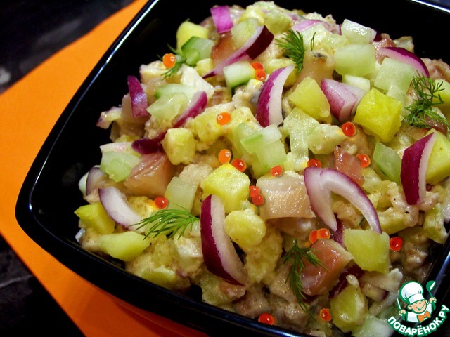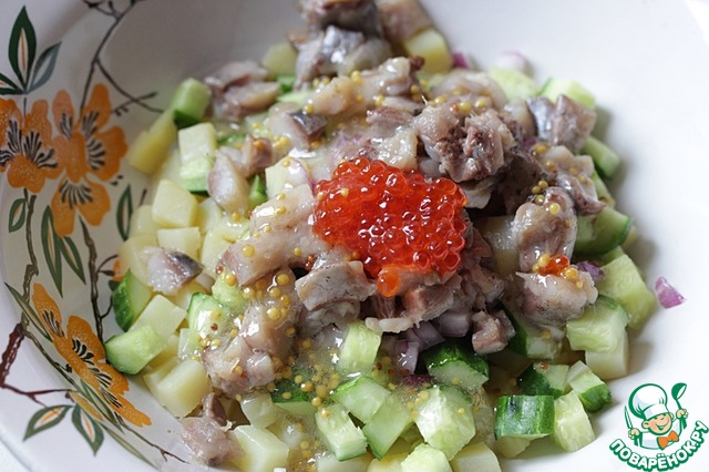 И без икры тоже должно неплохо получиться, просто вкус будет чуть иной, зато вы поймете, нравится ли вам вообще сочетание рыбы и огурца, раз у вас есть сомнения на этот счет. Вкусы ведь у всех разные, мне понравился салат, вам может не понравиться, не страшно. Ну и еще раз обращу ваше внимание на то, что раскладку ингредиентов можно под себя подстроить, может, вам будет вкуснее, если будет больше картофеля и лука, или наоборот, картошки по минимуму, и т. д. и т. п. Салаты вариативны в своем большинстве, в этом их большой плюс. Удачи!