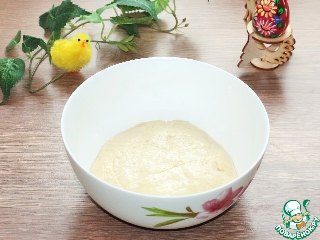 6. Готовое тесто должно быть не очень крутым и липнуть к рукам. Переложить тесто в смазанную растительным маслом миску, накрыть полотенцем или пленкой и оставить в тепле до увеличения в 2,5 раза.