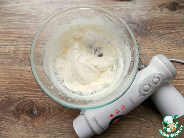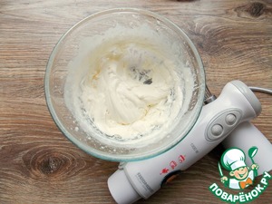 В миску наливаем холодные сливки, добавляем сахарную пудру и взбиваем до воздушной массы. Кладем творожный сыр снова взбиваем до пышной, плотной массы.