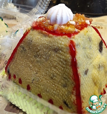 Нежная заварная пасха с абрикосовым джемом, курагой, изюмом и цукатами имеет восхитительный вкус и тонкий аромат. Она станет украшением стола на праздник Светлой Пасхи и не оставит никого равнодушным.