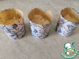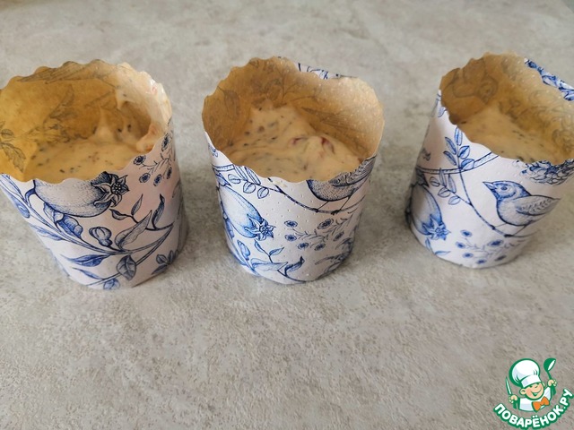 Заполнить формочки на 2/3 от объёма, тесто хорошо поднимается.