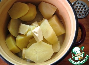 Картофель очистить, сложить в кастрюлю, залить водой и отварить как на обычное картофельное пюре, не забыв приправить солью по вкусу.