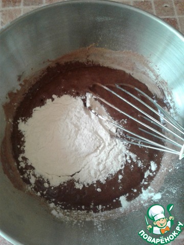 Добавить растительное масло, кефир и соду. Перемешать. Добавить какао и снова перемешать, чтобы не было комочков.