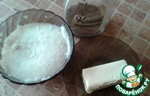 Пока пончики остывают, приготовим глазурь. Сливочное масло растопить. Добавить сахар и мешать до его полного растворения. Добавить какао и проварить до гладкого состояния.